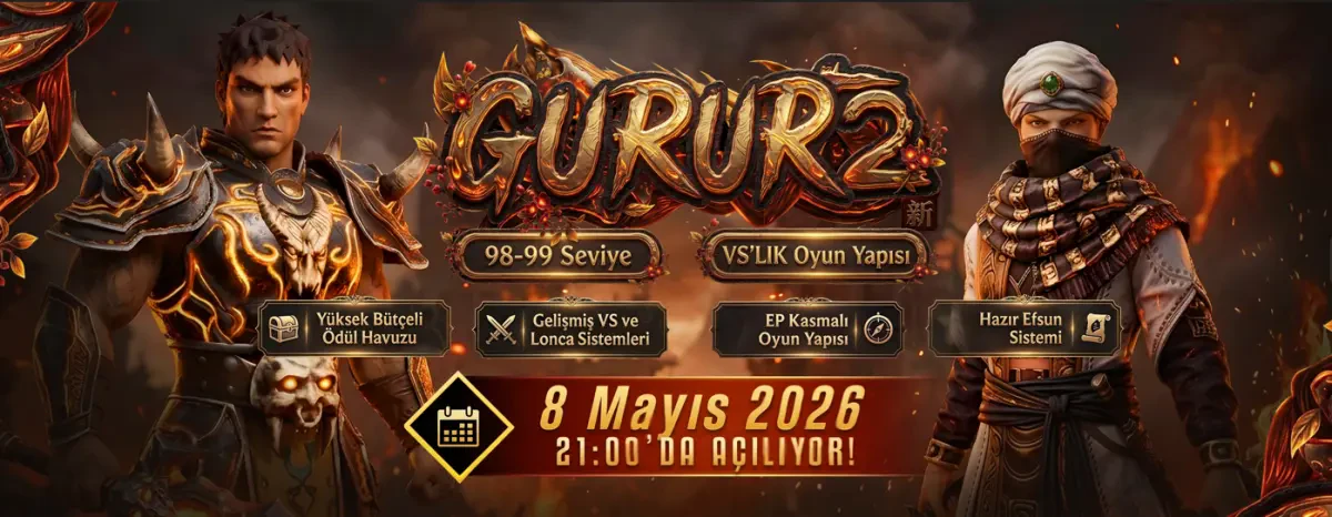 98-99 VSLİK kategorisi Metin2 PvP'nin en niş ve en özel yapısı. Oyuncular serverda dakikalar içinde hazır efsunlu itemlerle karakterini kurar ve tüm server ömrünü düello, lonca arenası ve hasar sıralaması turnuvaları üzerinde yaşar. Bu yapının mantığı farm yapmak değil — savaşmak. Tek tıkla efsunlama sistemi, hazır 1-1 ve 5-5 efsunlu setler, dengelenmiş damage tabloları ve saniyelik kısa round düelloları VSLİK'in standart özellikleri. Gurur2'nin 2013'teki tanıtım metninde "tek tık efsun sistemi ile vakit kaybetmeden wslere atılın" ibaresi vardı — marka o zamandan beri aynı felsefeyi koruyor görünüyor.
